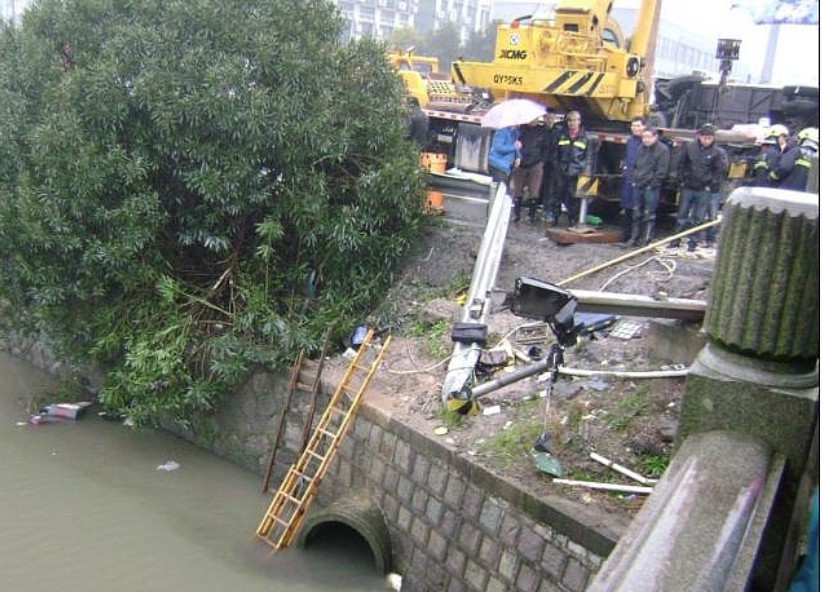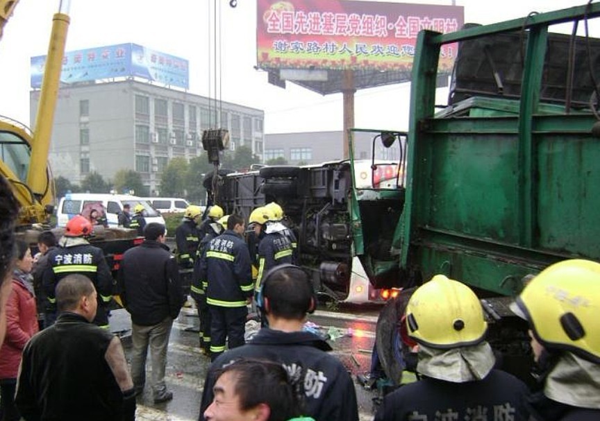 3月8日早上6时20分许,宁波余姚市泗门镇光明北路,一辆载有28人的大客车与大货车相撞后坠入附近河中。