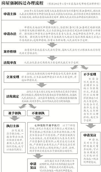昨日,最高法发布《关于办理申请人民法院强制执行国有土地上房屋征收补偿决定案件若干问题的规定》,对法院如何受理行政机关申请强制执行房屋征收、受理后如何进行审查和裁定等问题进行了规范,并确立了“裁执分离”为主导的强制执行方式。自2012年4月10日起施行。